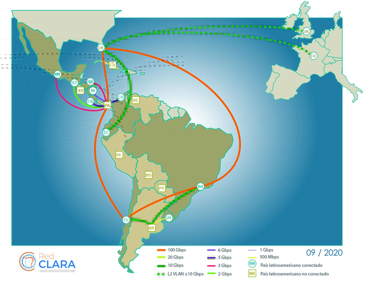 Nicaragua and Honduras are now connected to RedCLARA. The connection took place on June 10 and August 18 and was succeeded by the start of the testing and sending of IP addresses of member institutions of RUNBA (academic network of Nicaragua) and REDNESAH (Honduran academic network) by BGP (Border Gateway Protocol) to the Latin American collaboration network.The Nicaraguan network concluded its process on September 21, allowing the National Agricultural University of Nicaragua (UNA) to transmit data through RedCLARA. This is how the long-awaited reconnection of Nicaragua to the Latin American network was established.