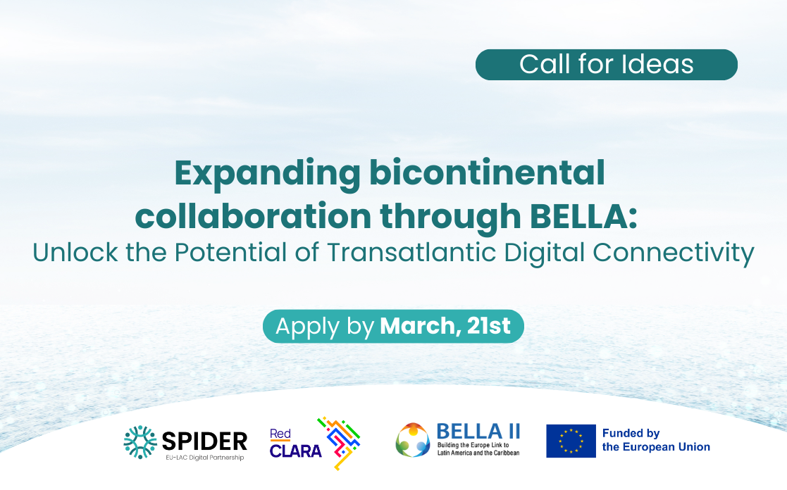As part of the digital cooperation between Latin America, the Caribbean, and Europe, the SPIDER project, in collaboration with RedCLARA, launches an innovative call to promote the strategic use of BELLA . The goal of this initiative is to speed up the creation of solutions based on AI, cybersecurity, and the use of digital resources. This will help both regions become more digitally competitive and transform.