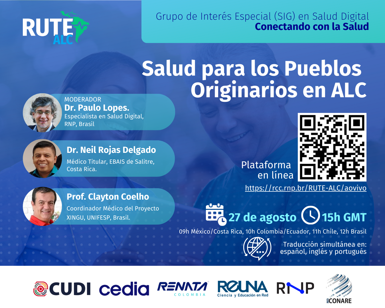 El evento se llevará a cabo el miércoles 27 de agosto, en los siguientes horarios: 9:00 a. m. en México y Costa Rica, 11:00 a. m. en Colombia y Ecuador, y 12:00 p. m. en Brasil y Chile. La transmisión se realizará a través de la plataforma Redes de Colaboração de Comunidades (RCC) en el enlace: https://rcc.rnp.br/RUTE-ALC/aovivo.