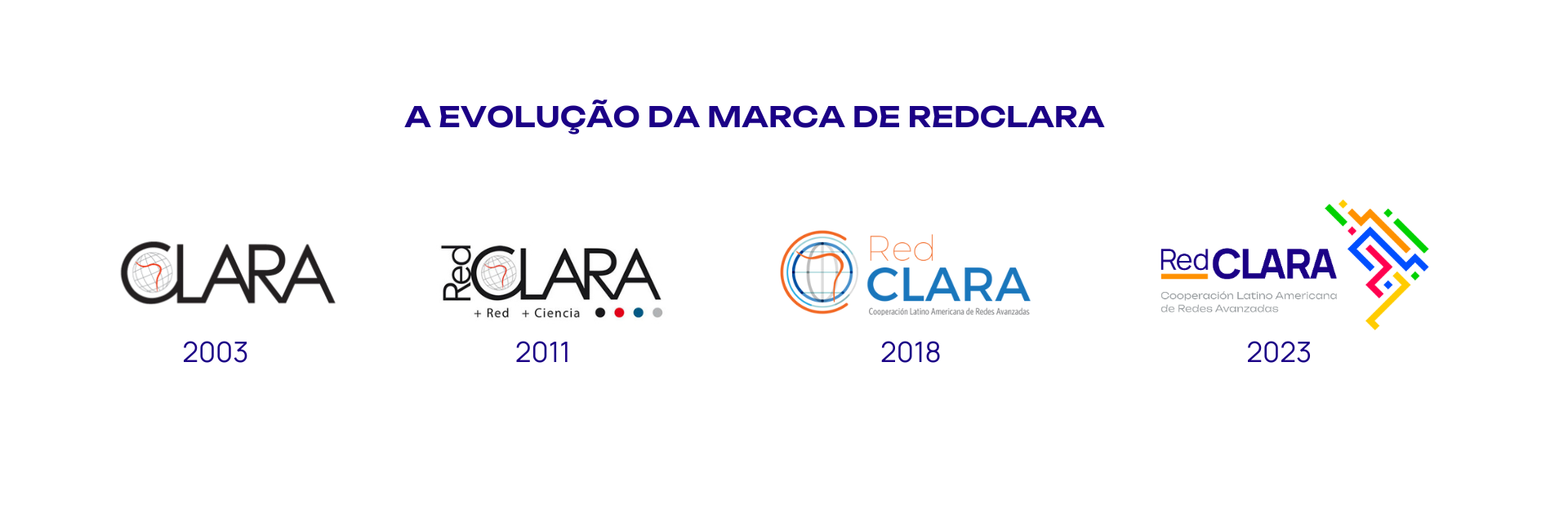 Esta é a segunda mudança significativa de marca pela qual a rede regional passa em seus 20 anos de história. A primeira versão da marca de RedCLARA nasceu logo após a criação da rede, em 2003, quando foram introduzidos o ícone do globo e a linha que emoldura a região latino-americana, solução que recebeu um "refresh" em 2011. Em 2018, a marca manteve o ícone tradicional, mas ganhou nova tipografia e cores: de preto, cinza e vermelho, o logotipo ganhou tons de azul, laranja e branco.