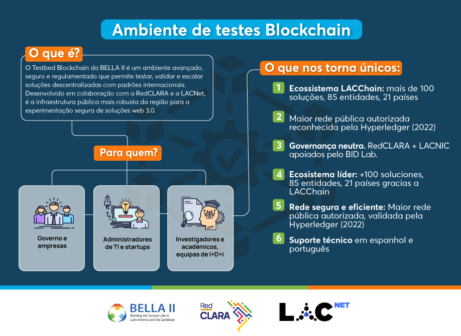 Graças ao projeto BELLA II, liderado pela RedCLARA e cofinanciado pela União Europeia, a região tem acesso a um ambiente inovador, seguro e colaborativo que impulsiona o desenvolvimento e a expansão desta tecnologia: o Testbed Blockchain, ou ambiente de testes blockchain.